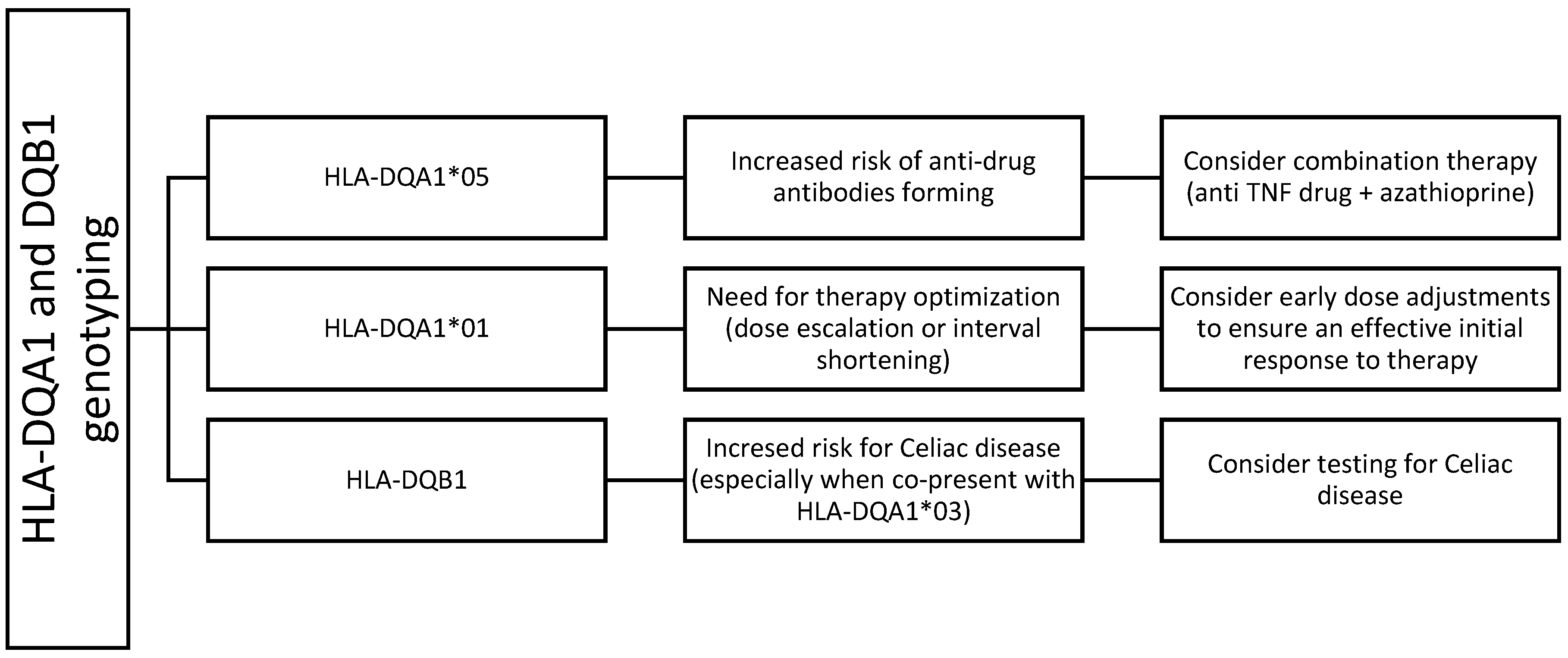 Pharmacogenetics | TPMT variants important for dosing | HLA-DQA1*05 linked to anti-drug antibodies | Combination reduces antibody formation |