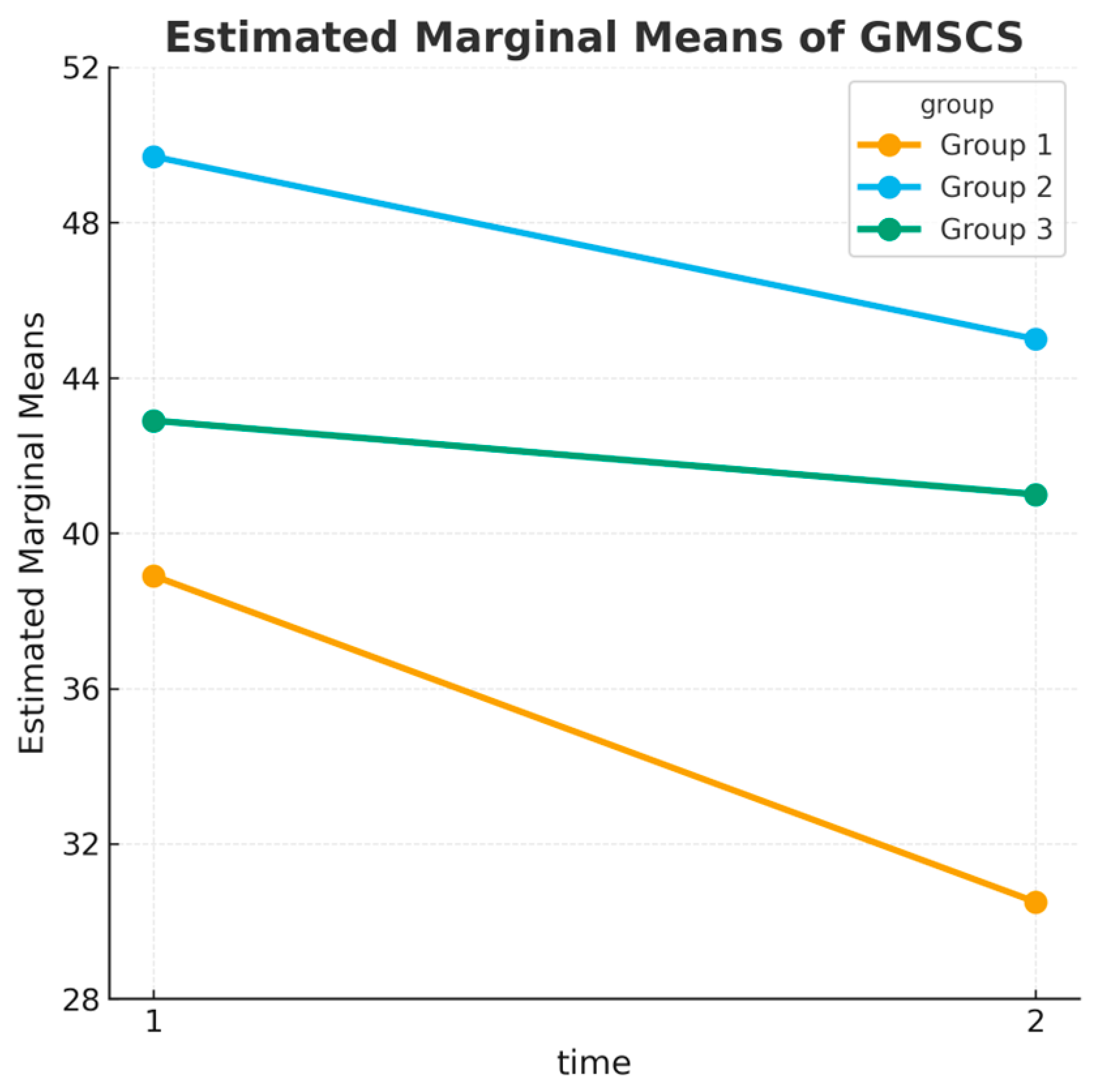 3.3.4. Group Comparison Regarding GMSCS Fatigue