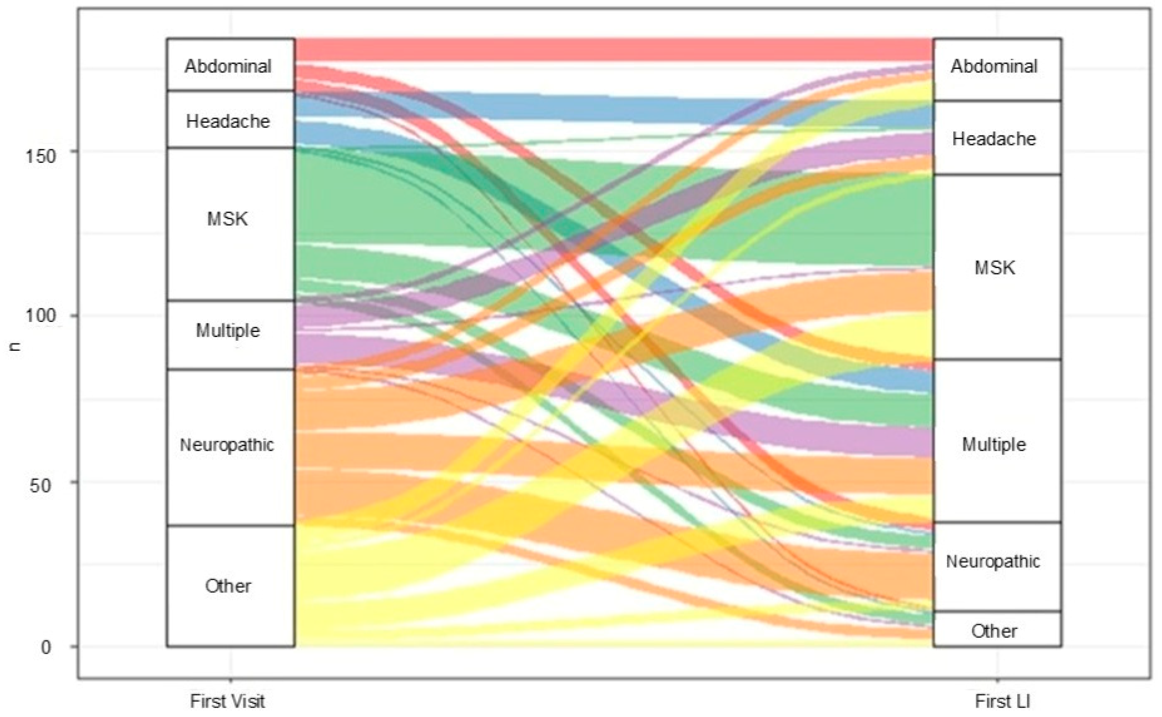Missed school day due to pain (mean; SD) | 20.4 (28.0) | 22.7 (27.9) | 0.423 |