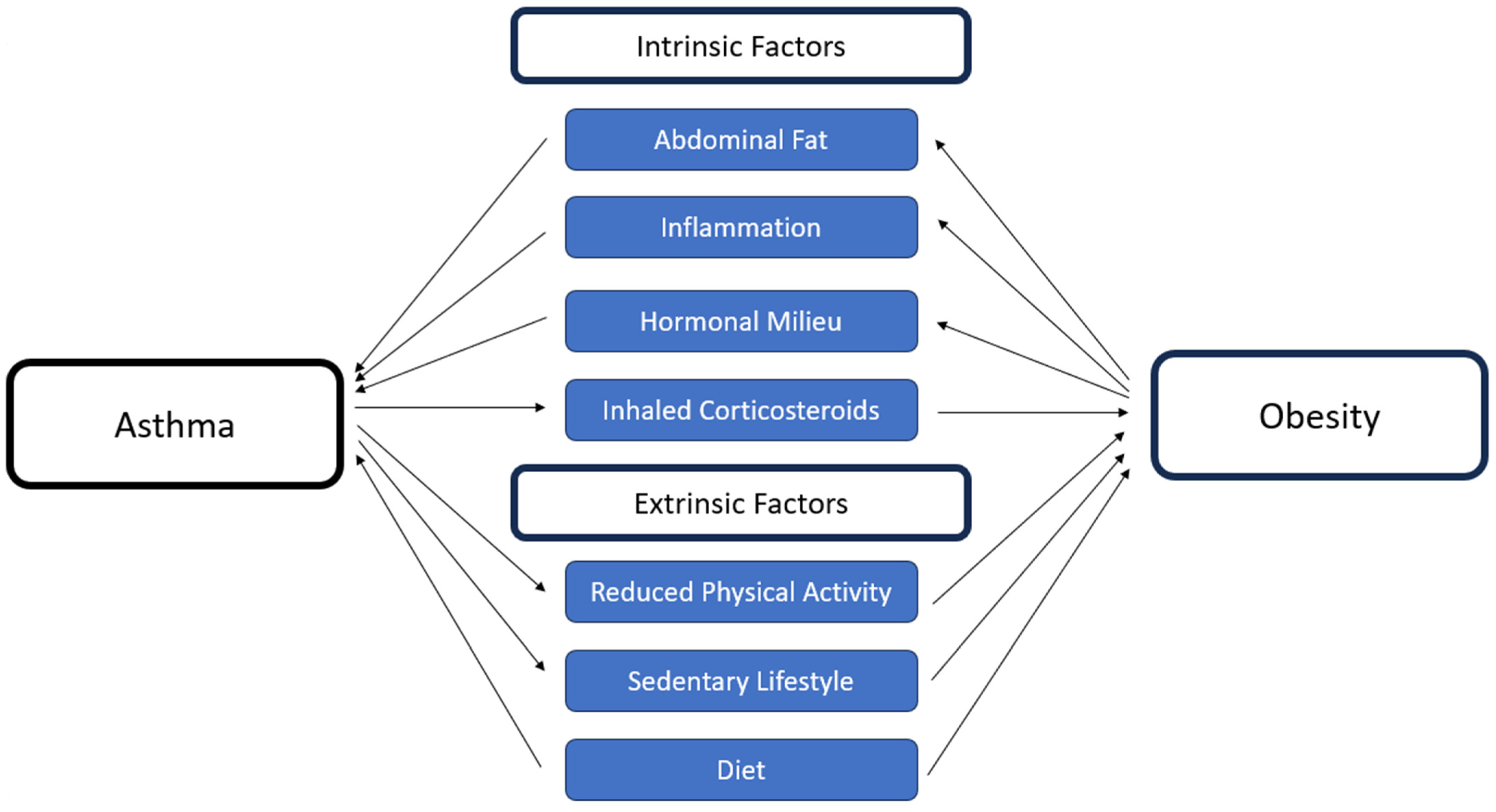 - Shan, L.S.; Zhou, Q.L.; Shang, Y.X. Bidirectional Association between Asthma and Obesity during Childhood and Adolescence: A Systematic Review and Meta-Analysis. Front. Pediatr. 2020, 8, 576858. [Google Scholar] [CrossRef] [PubMed]