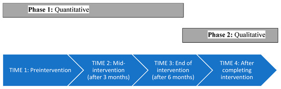 We used an explanatory, sequential mixed-methods design [45,46] in which the quantitative trends explicitly informed the qualitative interview guide; integration was planned a priori via connecting (building the interview topics on quantitative patterns) and weaving the two strands to produce meta-inferences. The quantitative study related to the impact on FA of medical cannabis treatment for autistic children. The follow-up qualitative phenomenological study included in-depth interviews to deepen understanding and contextualize the phenomena [47], as shown in Figure 1.