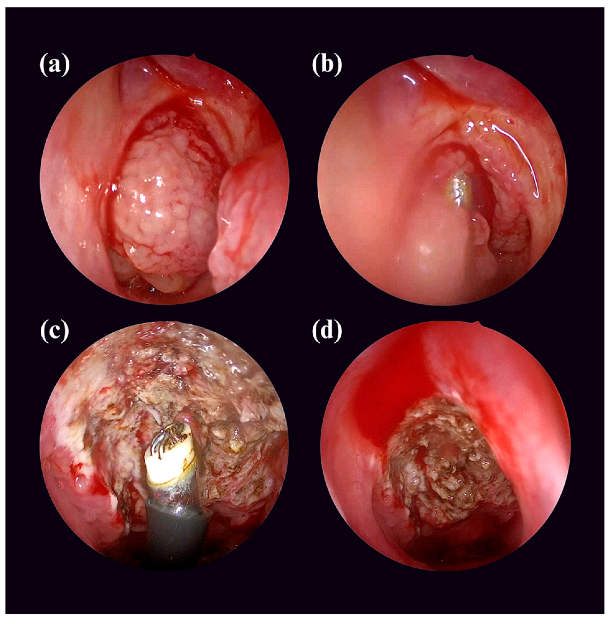 - Katakdhond, H.; Mestry, V.; Sardesai, R.B. Clinical outcomes of endoscopy assisted conventional adenoidectomy and endoscopic adenoidectomy with microdebrider: A prospective randomized control study. Int. J. Otorhinolaryngol. Head Neck Surg. 2025, 11, 117–125. [Google Scholar] [CrossRef]