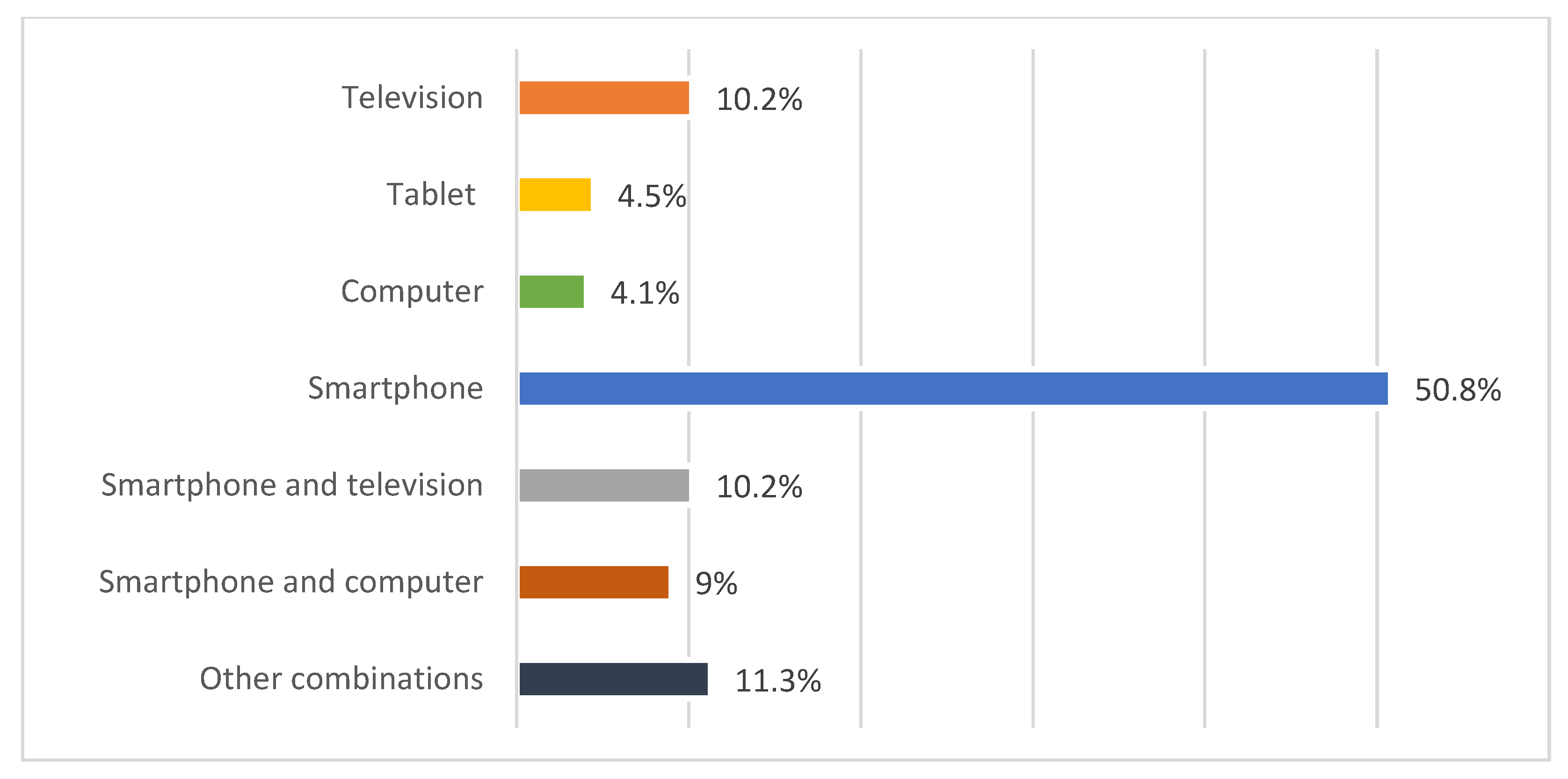- Hisler, G.C.; Hasler, B.P.; Franzen, P.L.; Clark, D.B.; Twenge, J.M. Screen media use and sleep disturbance symptom severity in children. Sleep Health 2020, 6, 731–742. [Google Scholar] [CrossRef]