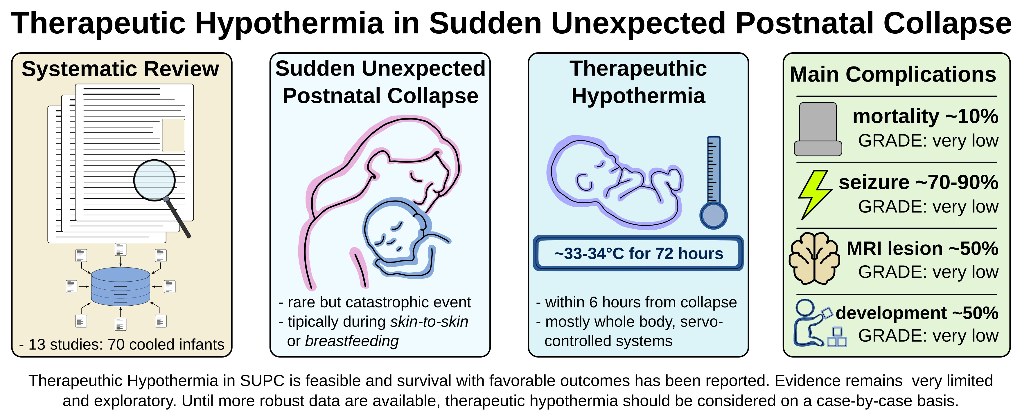 - Therapeutic hypothermia has been increasingly applied to neonates with sudden unexpected postnatal collapse (SUPC), with survival and normal neurodevelopment reported in about half of cooled survivors.