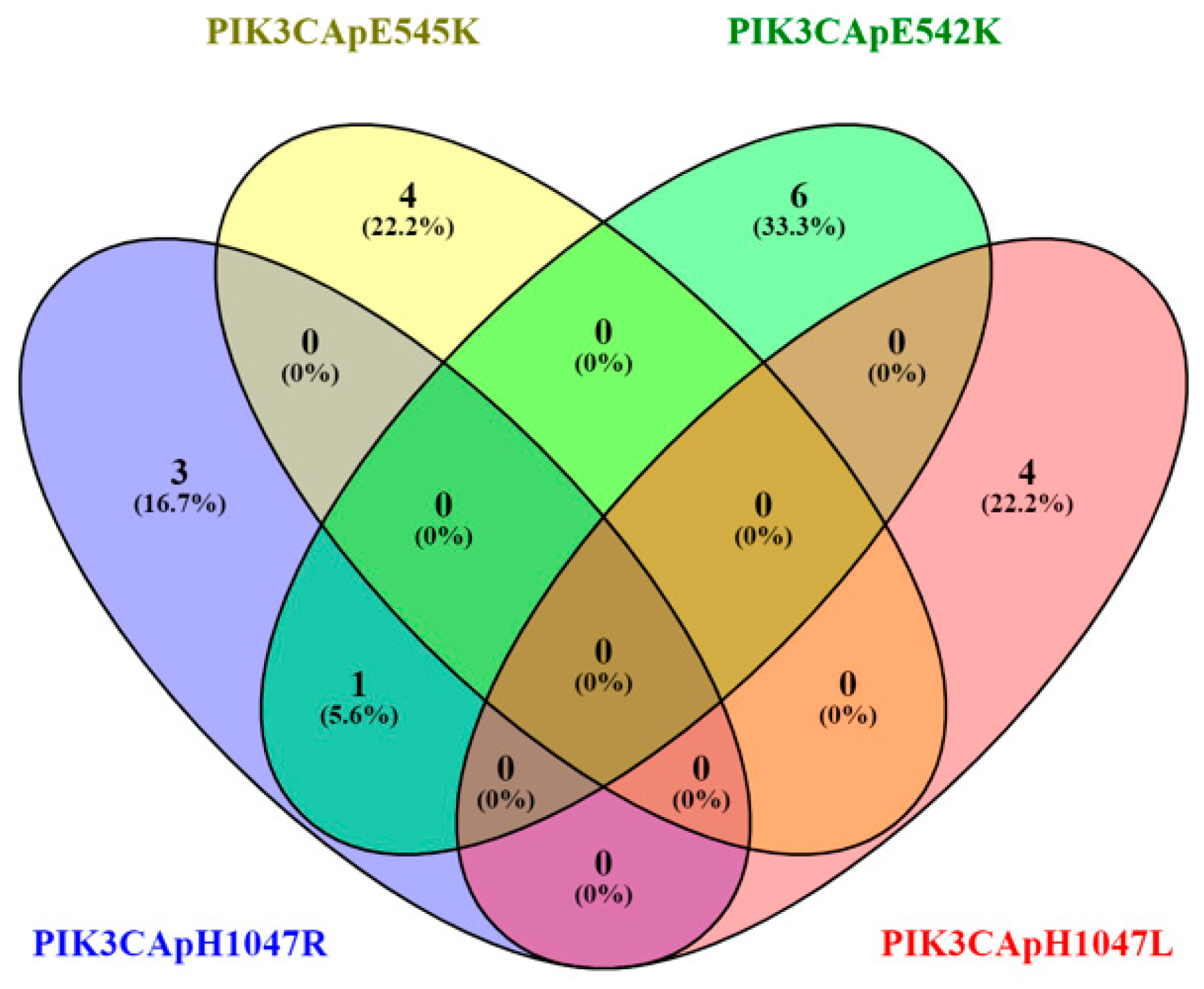 Figure 1. Venn diagram of PIK3CA mutations hotspots.
