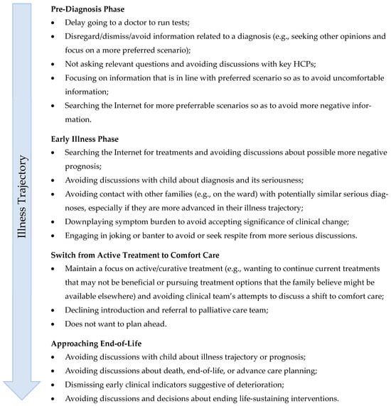 Types of caregiver information avoidance scenarios that may occur at key points of the child’s illness trajectory.