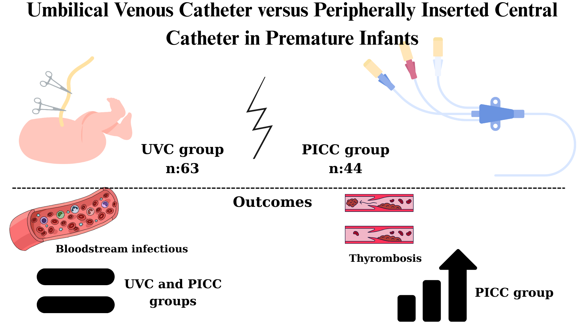 - Umbilical venous catheter (UVC) insertion was faster, required fewer attempts, and was associated with fewer thrombosis and leakage complications compared with peripherally inserted central catheters (PICCs).
