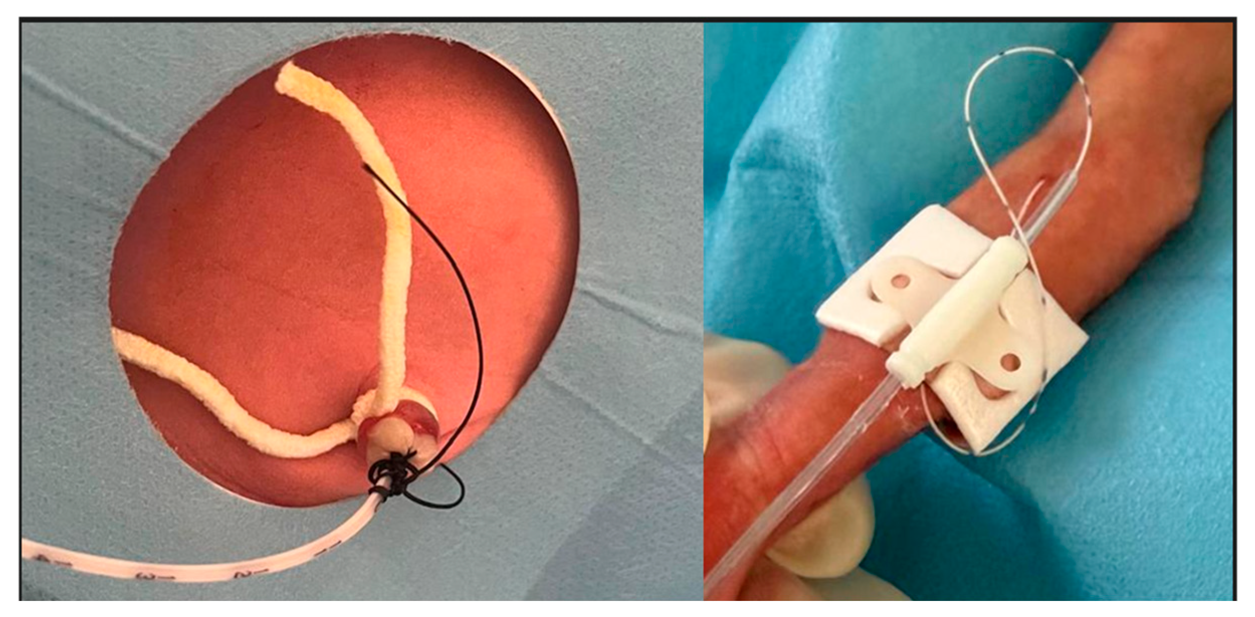 - Lewis, K.; Spirnak, P.W. Umbilical Vein Catheterization. In StatPearls; StatPearls Publishing: Treasure Island, FL, USA, 2025. [Google Scholar] [PubMed]