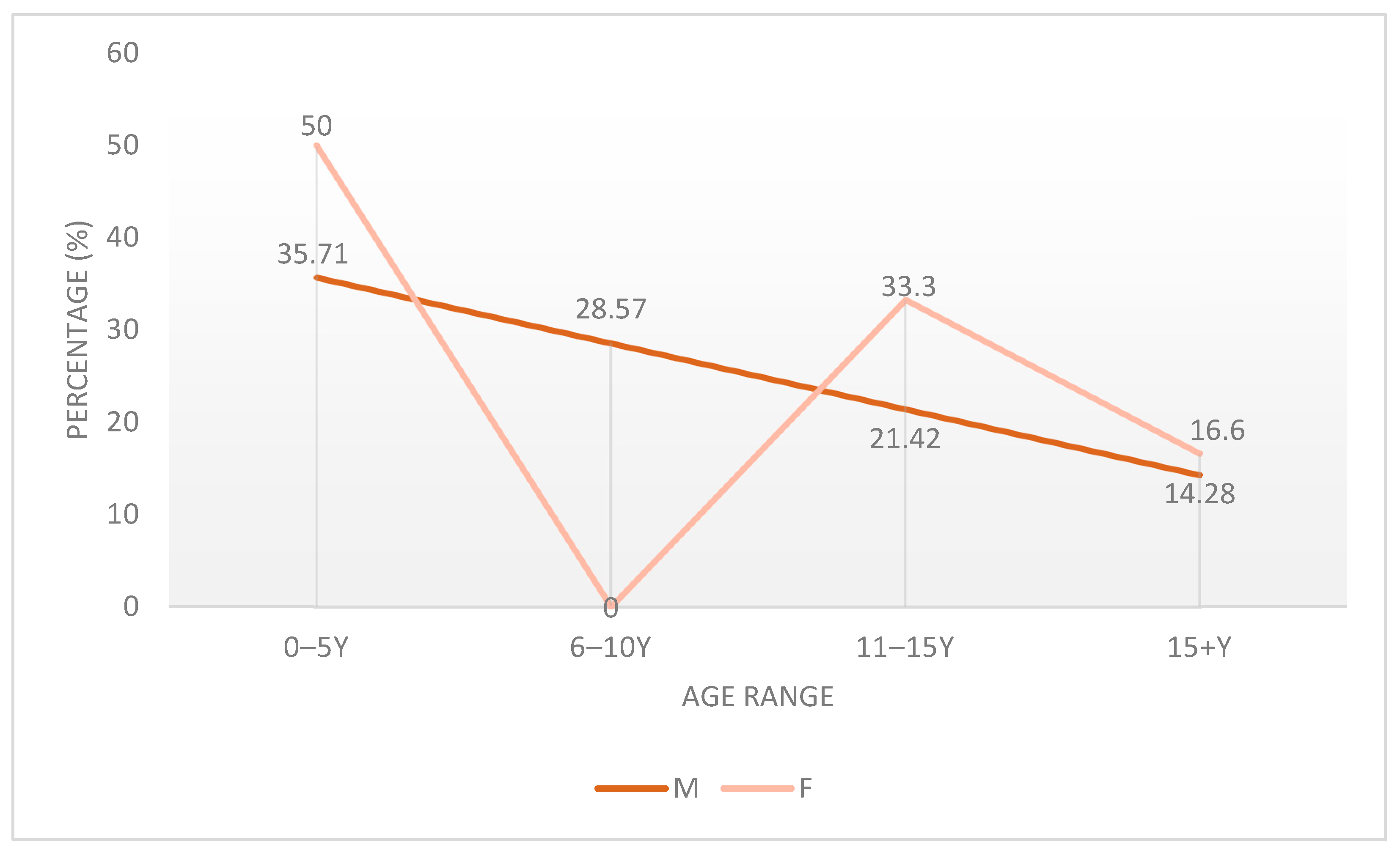 | Sex Distributions | F (Number of Patients/Percentages (%)) | M (Number of Patients/Percentages (%)) | F (Number of Patients/Percentages (%)) | M (Number of Patients/Percentages (%)) |