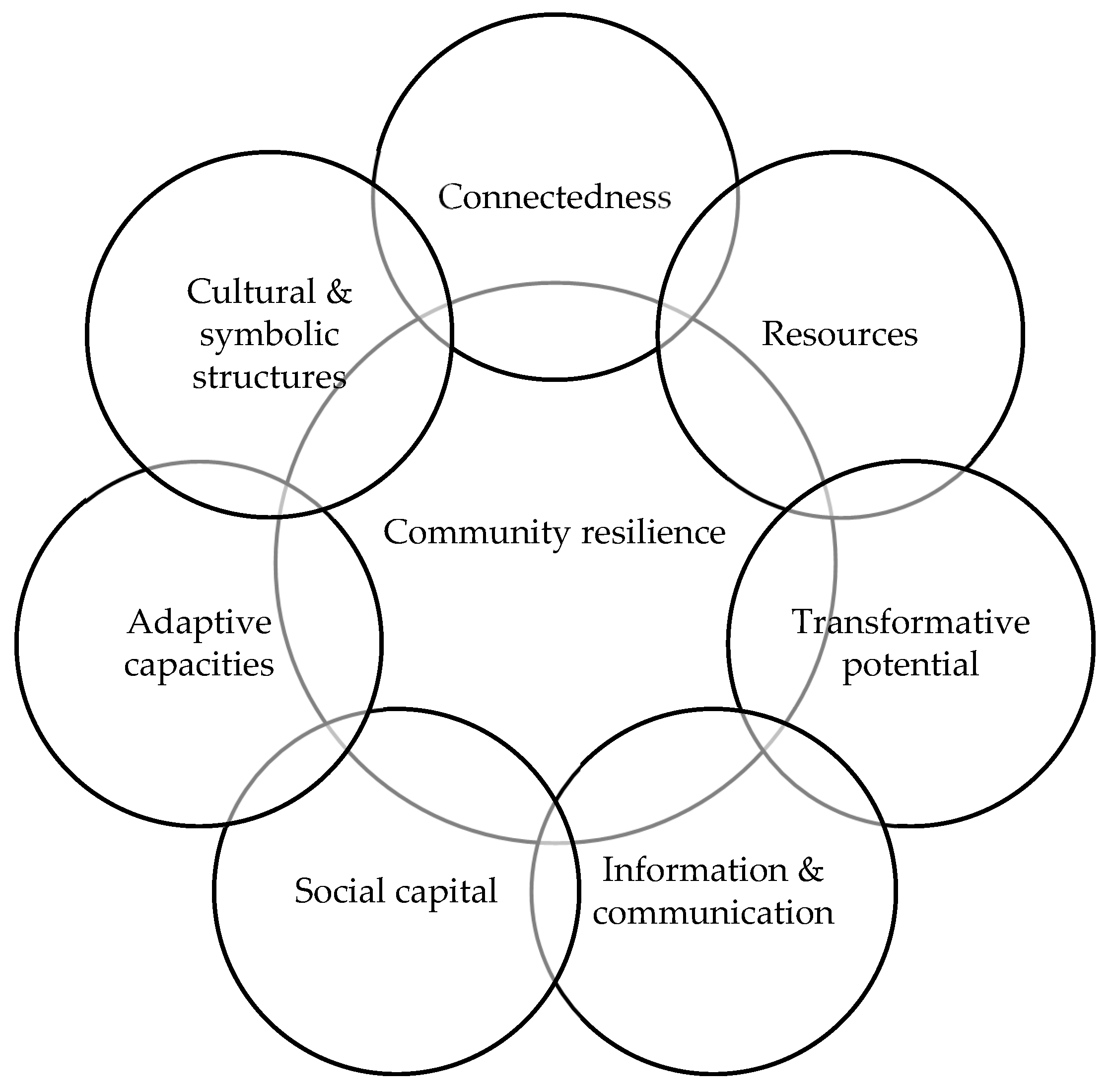 - Aldrich, D.P.; Meyer, M.A. Social Capital and Community Resilience. Am. Behav. Sci. 2015, 59, 254–269. [Google Scholar] [CrossRef]