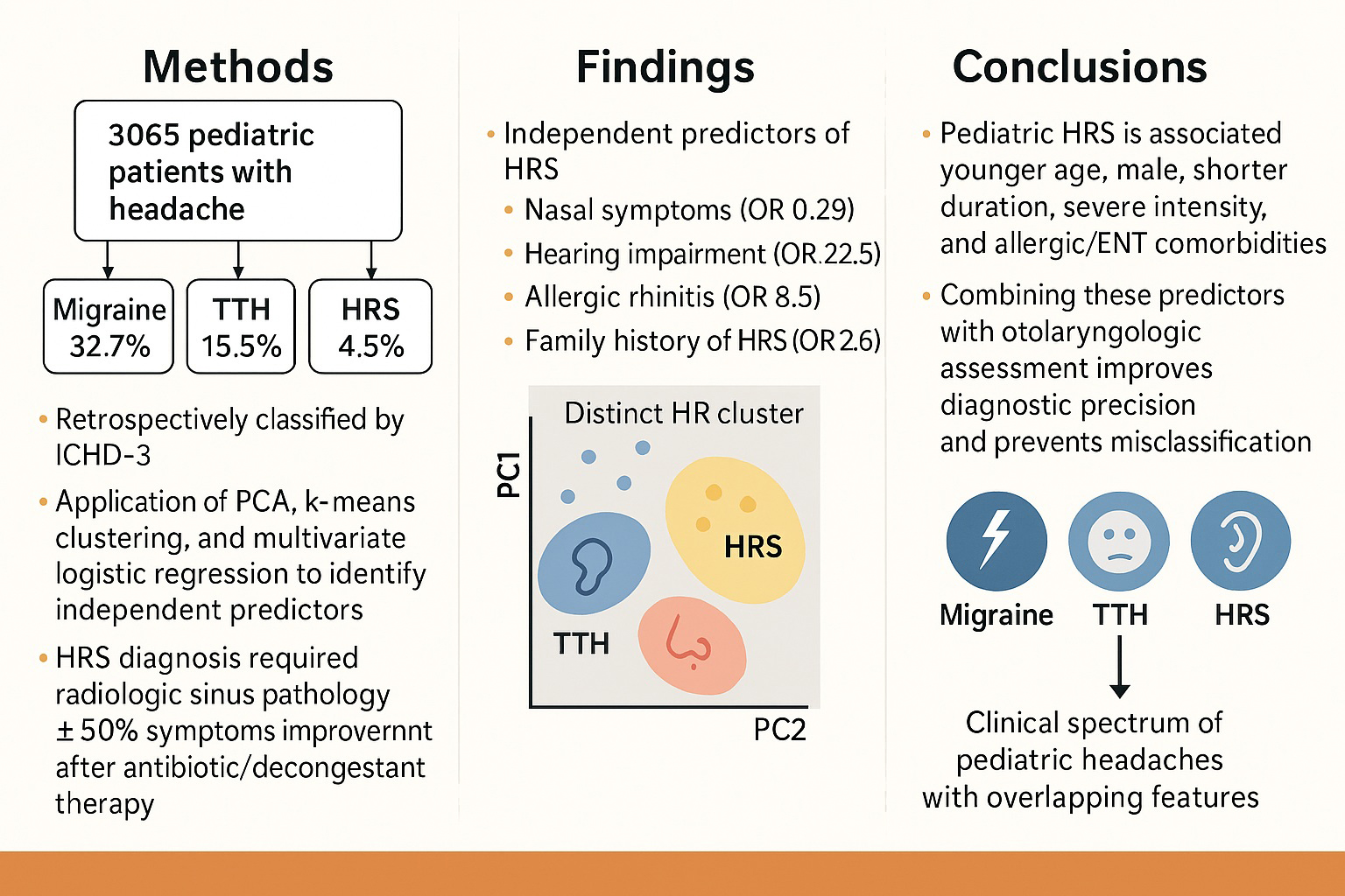 - Pediatric headache attributed to rhinosinusitis (HRS) was often misdiagnosed as migraine or tension-type headache, especially in younger children.