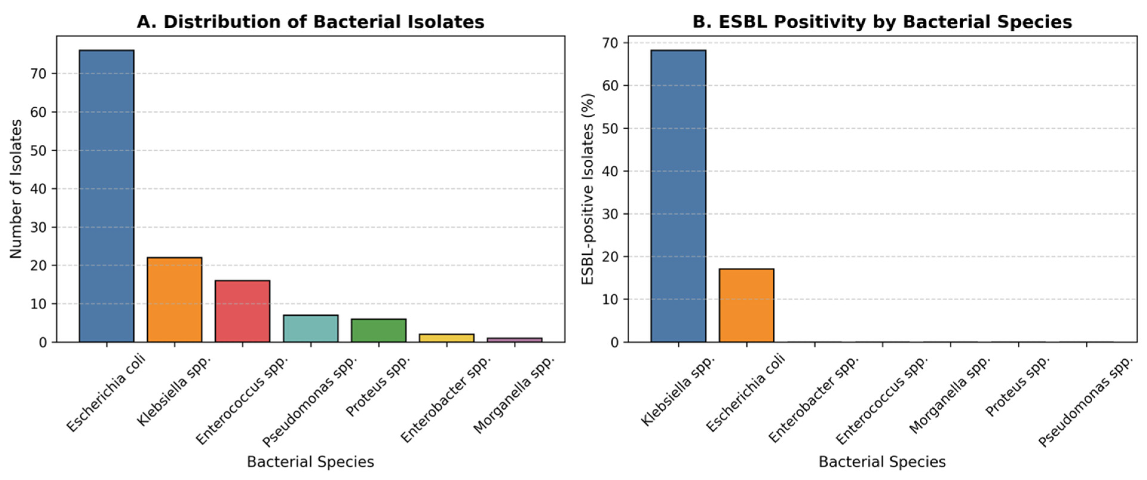 26]. ESBL data were specifically extracted because ESBL production represents the most clinically significant and standardised MDR phenotype with established CLSI testing and confirmatory methods [