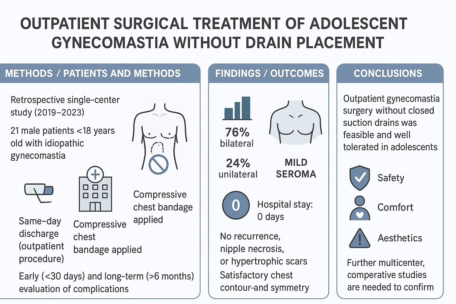 APA StyleDelgado-Miguel, C., Fuentes, E., Aguado, P., & Díez, R. (2025). Gynecomastia Outpatient Surgical Treatment in Children Without Closed-Suction Drain Placement: Is It Safe and Effective? Children, 12(11), 1571. https://doi.org/10.3390/children12111571