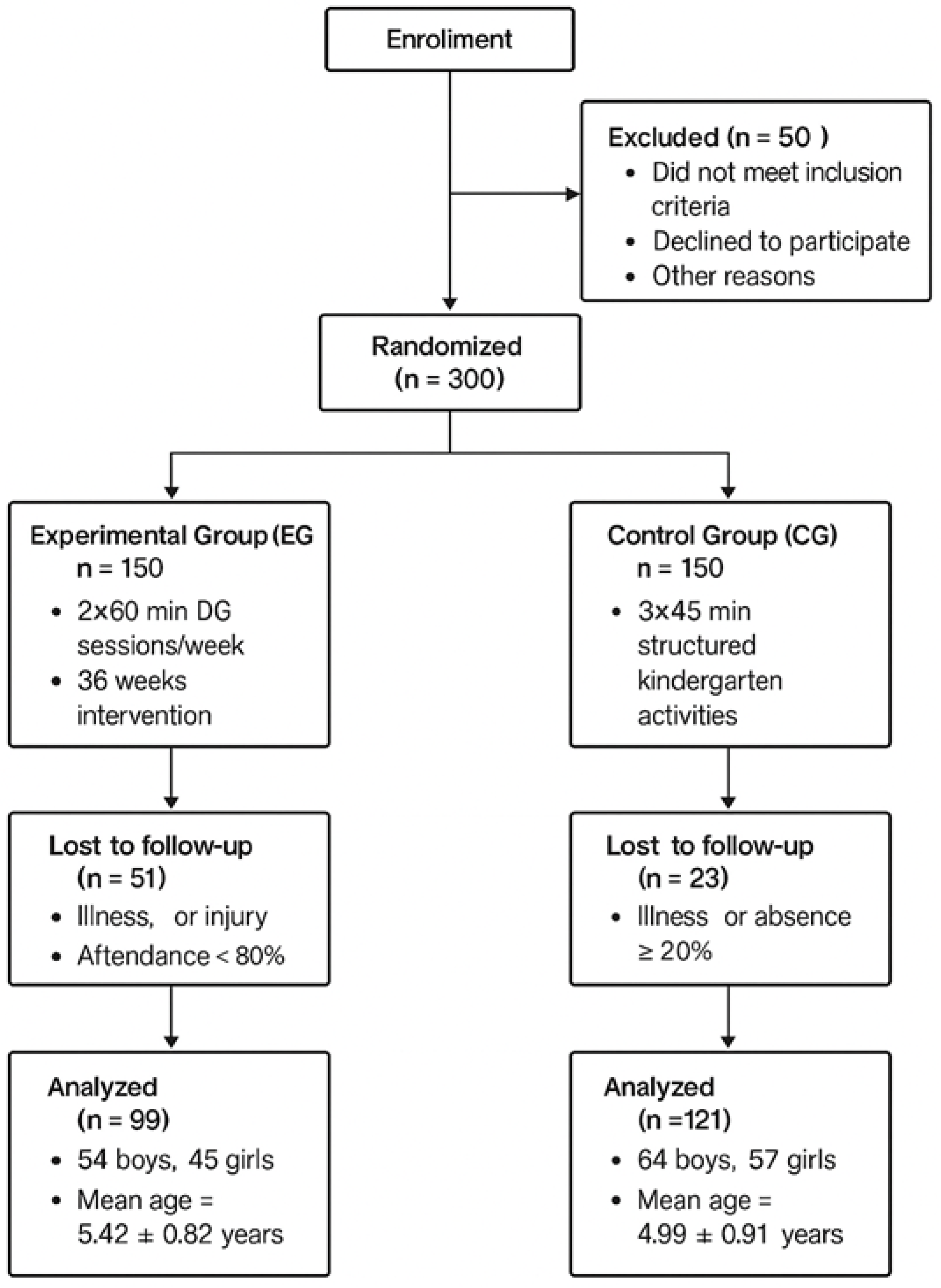 - Two structured DG sessions weekly are adequate to promote gross motor skill development in early childhood.