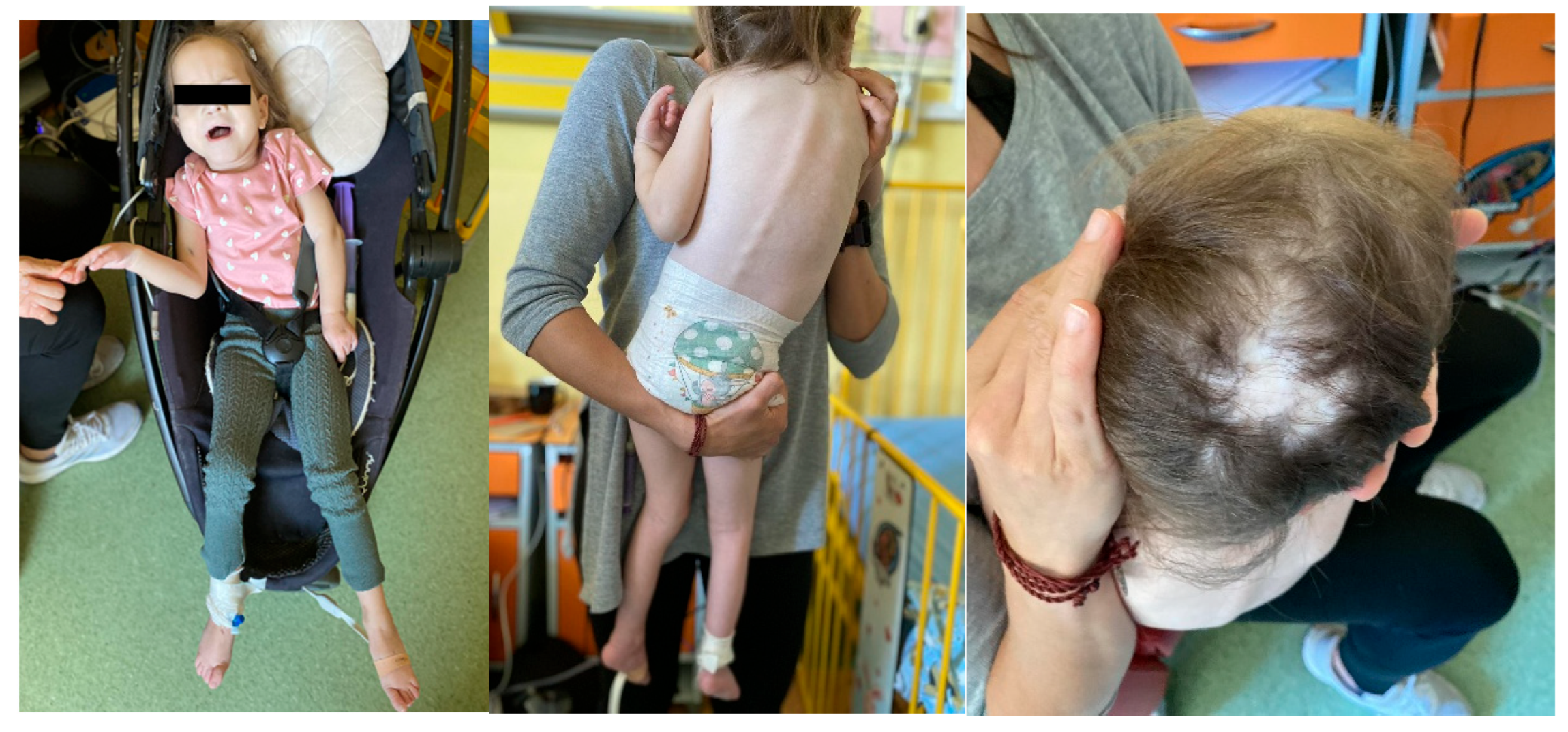 Figure 3). The girl responds to speech with smiles and laughs, she enjoys watching her brothers play and cries when she wants to be cuddled; however, she has no significant speech development and has severe cognitive disabilities. Despite the numerous obstacles she faces, the patient’s journey illustrates the growth and development with the support of an interdisciplinary care team. It highlights the critical role of personalized care and early intervention.