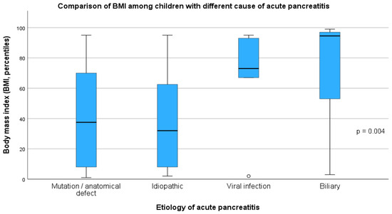- Uc, A.; Zimmerman, M.B.; Wilschanski, M.M.; Werlin, S.L.; Troendle, D.; Shah, U.M.; Schwarzenberg, S.J.; Rhee, S.; Pohl, J.F.; Perito, E.R.; et al. Impact of Obesity on Pediatric Acute Recurrent and Chronic Pancreatitis. Pancreas 2018, 47, 967–973. [Google Scholar] [CrossRef] [PubMed]