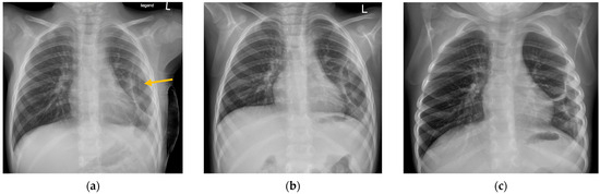 “Pneumothorax ex vacuo” in a 2-year-old girl. (a) Anterior–posterior (AP) chest radiograph taken 2 days after discharge showing a left-sided pneumothorax (arrow). (b) Persistent pneumothorax 7 days after discharge. (c) At 2.5 weeks, pneumothorax is still radiologically detectable.