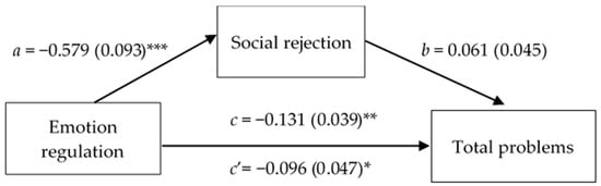 3.3. Indirect Relationships Between Emotion Regulation Skills, Peer Acceptance and Rejection, and Emotional–Behavioral Problems