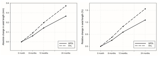 Axial length change at 2 years: Comparison between SVL and MPDL.