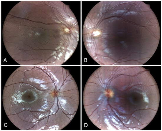 Eye movement recordings and microperimetry have been widely used to measure and quantify nystagmus [20,21,22]. However, we found no prior studies in the literature that utilized fundus photographs for similar quantitative assessments. Spectral-domain optical coherence tomography (SD-OCT), which includes fundus imaging, has been shown to effectively capture macular morphology in patients with congenital nystagmus [23]. While SD-OCT does not directly assess nystagmus, its ability to obtain high-resolution images despite involuntary eye movements suggests that fundus imaging techniques can be successfully applied to patients with nystagmus. The increased scanning speed of SD-OCT (50 to 100 times faster than previous technologies) has been a key factor in overcoming motion-related artifacts [23]. Additionally, the feasibility of non-mydriatic fundus photography in children has been demonstrated [24]. Although this study did not specifically focus on nystagmus, it showed that fundus photography is a practical and time-efficient method for acquiring high-quality images in children over the age of three.