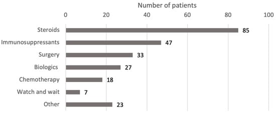 - Karim, A.F.; Bansie, R.D.; Rombach, S.M.; Paridaens, D.; Verdijk, R.M.; van Hagen, P.M.; Van Laar, J.A.M. The treatment outcomes in IgG4-related disease. Neth. J. Med. 2018, 76, 275–285. [Google Scholar]