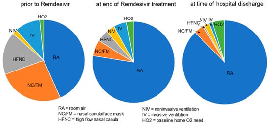 Respiratory support needs [RA/none vs. any (end of Tx and discharge compared to prior to start of treatment, p < 0.001)].