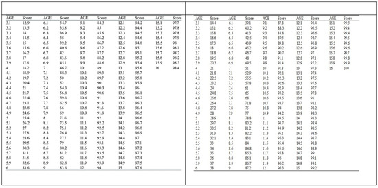 The DA was derived by converting the developmental score using a standardized conversion table based on patient sex (Figure 2).