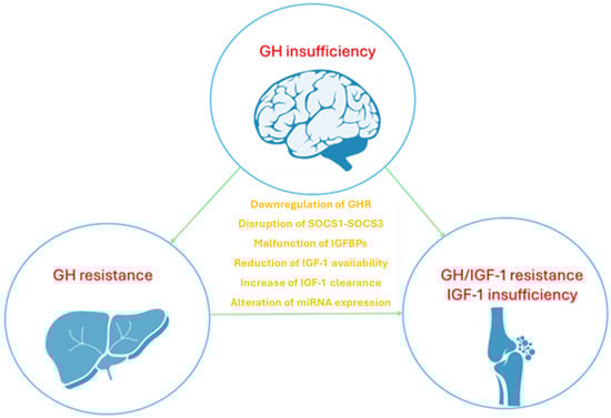 2.1. Growth Hormone Resistance: The Dysregulation of Growth Hormone Receptor and Suppressor of Cytokine Signaling