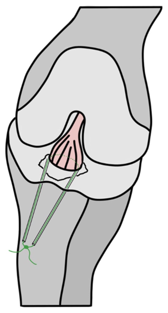 - Kim, Y.-M.; Kim, S.-J.; Yang, J.-Y.; Kim, K.-C. Pullout Reattachment of Tibial Avulsion Fractures of the Anterior Cruciate Ligament: A Firm, Effective Suture-Tying Method Using a Tensioner. Knee Surg. Sports Traumatol. Arthrosc. 2007, 15, 847–850. [Google Scholar] [CrossRef] [PubMed]