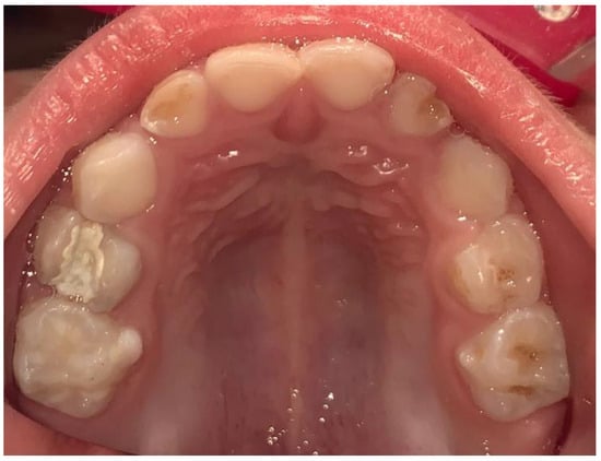 - Torlińska-Walkowiak, N.; Tuczyńska, M.; Kucharska, K.; Wyzga, S.; Singh, N.; Łukomska-Pochylska, M.; Fudalej, O.; Opydo-Szymaczek, J. Infraocclusion—An Anomaly in Primary Dentition. Pediatr. I Med. Rodzinna 2022, 18, 341–344. [Google Scholar] [CrossRef]