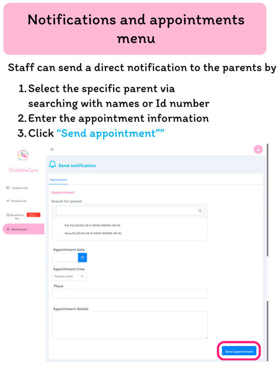The staff can send direct notifications to the parents by selecting the name or ID number of the latter (Figure 11).