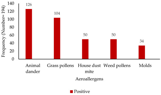 Distribution of aeroallergen sensitization among study participants (x-axis—aeroallergen; y-axis—patient numbers).