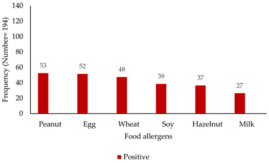 Distribution of food sensitization among study participants (x-axis—food allergens; y-axis—patient numbers).