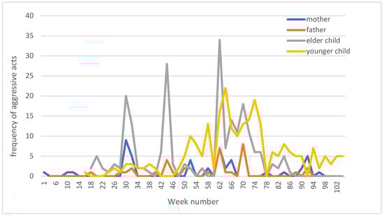 Bi-weekly frequency of aggressive acts in Family B.