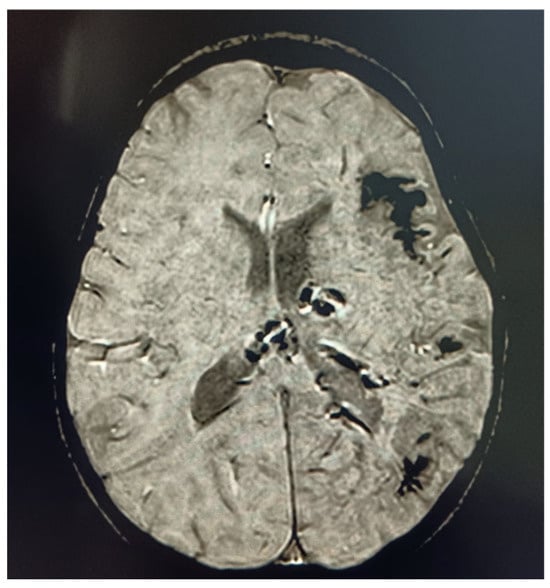 Due to his neurological deterioration, an urgent brain MRI was ordered; however, it was delayed because of logistical challenges. A lumbar puncture was performed, revealing no abnormalities in the cerebrospinal fluid (CSF) analysis, ruling out infectious and autoimmune encephalitis. Electroencephalography (EEG) showed continuous epileptic activity over the left hemisphere, suggesting ictal activity with a potential stroke-like pathology [72].