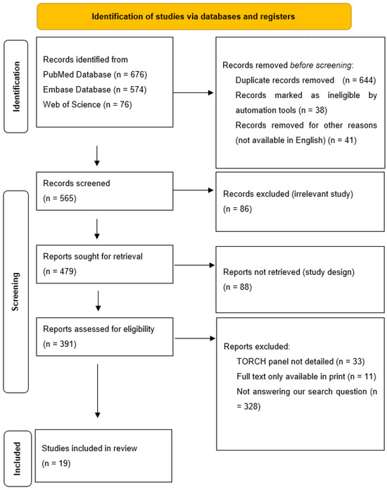 While processing the abstracts, we excluded all articles that did not adequately answer our research question, i.e., what prenatal ultrasound abnormalities are associated with congenital cytomegalovirus, and what postnatal abnormalities are associated with these? We excluded all articles from the processing where cytomegalovirus and other TORCH (“toxoplasmosis, rubella cytomegalovirus, herpes simplex, and HSV”) infections were described together. The decision process is described in