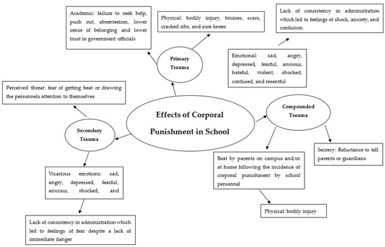 These findings align with and extend prior findings. For example, Cruz et al. [9] found that students who experienced physical trauma felt less faith in their perpetrators and in authority figures more generally. Likewise, our participants felt less trust in school officials, parents, and guardians due to corporal punishment. Additionally, the American Psychiatric Association studied the psychological consequences of traumatic exposure and found that youth who experienced trauma had post-traumatic stress [12]. Likewise, our participants felt fear, anxiety, and depression following their instance(s) of trauma. Lastly, Benight and Bandura [29] found that following a traumatic incident, youth had an inability to recover. Likewise, former students often recounted how the event(s) scarred them for life—how they will never forget their experiences with corporal punishment. It is imperative that children be provided with a safe, nonthreatening environment in which safety and the establishment of trust are prioritized in order to heal trauma such as secondary trauma. They also felt that the instances affected their current behavior as adults.