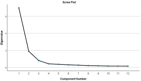 The statistically significant level was set at 0.05. All statistical analyses were conducted via IBM© SPSS© version 29 statistical software (IBM Corp. Released 2023. IBM SPSS Statistics for Windows, Version 29.0.2.0 Armonk, NY, USA: IBM Corp) and R Statistics software version 4.0.3 [44] (R Core Team, 2020) using the Lavaan package [45] and LavaanPlot package [46]. Exploratory Factor Analysis (EFA) was assessed using Principal Component Analysis with Varimax Rotation Method. For Confirmatory Factor Analysis (CFA), the comparative fit index (CFI), Tucker–Lewis Index (TLI), and the root mean square error of approximation (RMSEA) were used. Internal consistency was evaluated using Cronbach’s alpha coefficient [47].