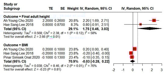 Meta-analysis of final adult height and BMI for children with central precocious puberty after leuprorelin treatment [22,24,25].