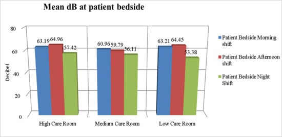 dB levels at the patient’s bedside in different NICU rooms.