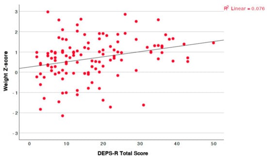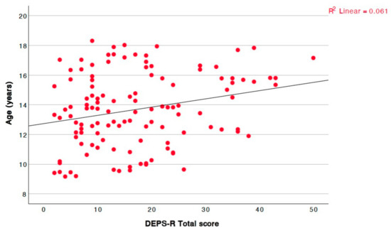 The linear correlations between the study parameters and the total DEPS-R score are documented in Table 3.