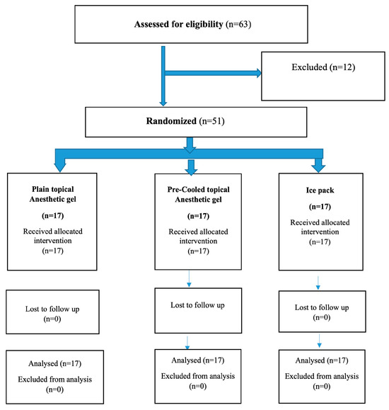 Maganur PC, Ghawi AA, Arishi GD, Bahammam HA, Alessa N, Hamed NE, Jawhali NA, Sawady M, Manqari AIH, Vishwanathaiah S. A Comparative Study on Pain Perception in Children, After Application of Pre-Cooled and Plain Topical Anaesthetic Gel During Local Anaesthetic Administration—A Parallel Three-Arm Randomised Control Trial. Children. 2025; 12(7):863. https://doi.org/10.3390/children12070863