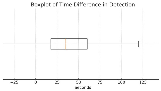 Figure 1 presents a boxplot illustrating the distribution of time differences between the two detection methods.