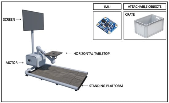 The ADL-TTD is a multifunctional device developed by UMACO B.V. in Groningen, the University of Maastricht, and the Adelante rehabilitation center and funded by the Johanna Kinderfonds and Health Holland. The device includes a motor, an IMU sensor (Adafruit BNO055 Absolute Orientation Sensor), a horizontal desktop, and attachable objects such as a plate, a box (for bimanual tasks), or a cup (for unimanual tasks). The materials are shown in Figure 1. The objects are connected to the device by a cable. The motor has the properties of an ergometer, so when the object is pulled, the metal cable will also be rolled out and locked at a specific height, enabling the measuring unit to determine the object’s isometric force.