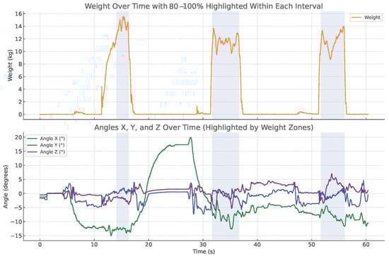 The testing process for each participant utilized Hebert’s protocol, as described for the HHD measurement, to enhance testing stability and guarantee maximum strength in every trial [19]. The Hebert protocol describes that when MVC varied by more than 20% across the three measurements, up to two additional trials should be conducted following the same protocol. Only the measurements within a 20% variance were considered valid. Three measurements within the range of 20% difference were selected. Meanwhile, during the whole period of lifting the position data of the box were also captured by IMU. Each participant underwent this testing procedure twice—test (T0) and retest (T1)—with an intersession interval ranging from 60 min to 24 h. All the raw data were documented after each test.