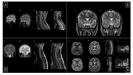 A total of 30 pediatric patients (50% male) with acquired demyelinating syndromes were included in the study. The mean age at disease onset was 11.3 years (range: 2–17), with 50% of patients presenting before the age of 11. A positive family history for neurological disorders—such as stroke, epilepsy, Parkinson’s disease, or oligodendroglioma—was reported in 13% of cases. Additionally, a family history of autoimmune diseases was found in 20% of patients, including conditions such as autoimmune cholangitis, rheumatoid arthritis, psoriasis, Hashimoto’s thyroiditis, vitiligo, and celiac disease. Epstein–Barr Virus (EBV) exposure was documented in 53% of patients. Cerebrospinal fluid (CSF) analysis revealed hyperproteinorrachia in 33% of the sample.