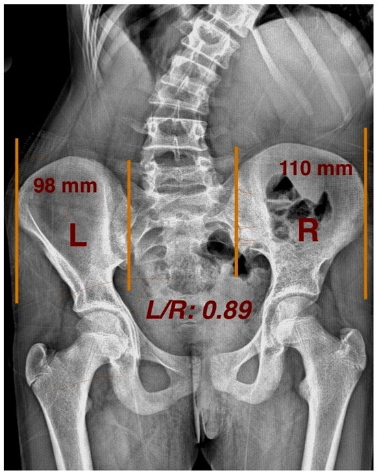 Measurements of leg length discrepancy, the pelvic axial rotation (PAR) ratio, and the direction of pelvic rotation were performed using the open-source software Horos v. 4.0.0 (https://horosproject.org/). (Access date: 15 January 2025).