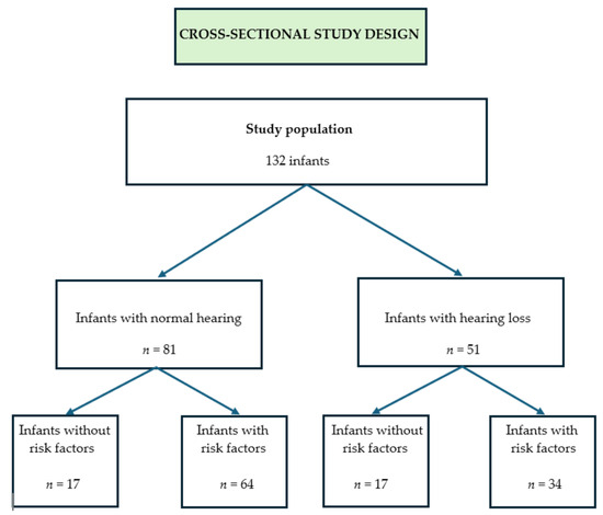 A cross-sectional study was conducted according to the STROBE checklist for cross-sectional studies (https://www.strobe-statement.org/download/strobe-checklist-cross-sectional-studies-pdf; last access: 1 August 2025) from June 2023 to June 2024, with a sample of 132 pediatric patients pertaining to the neonatal hearing screening pathway at the Audiology and Phoniatrics Unit of the University of Naples Federico II. The selected infants were aged between 1 and 12 months.