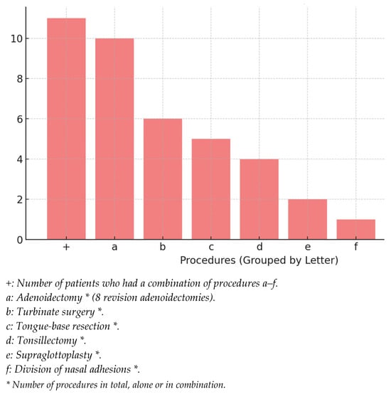 - Adenoidectomy (N = 10, 52.6%)