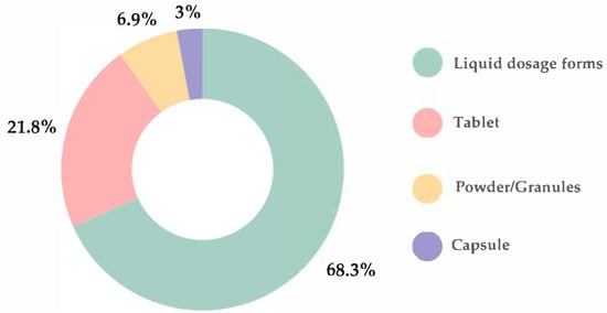 33]. Furthermore, this study indicated that liquid formulations were predominantly selected by children under 12 years of age and by those infrequently taking medications or considered healthy [